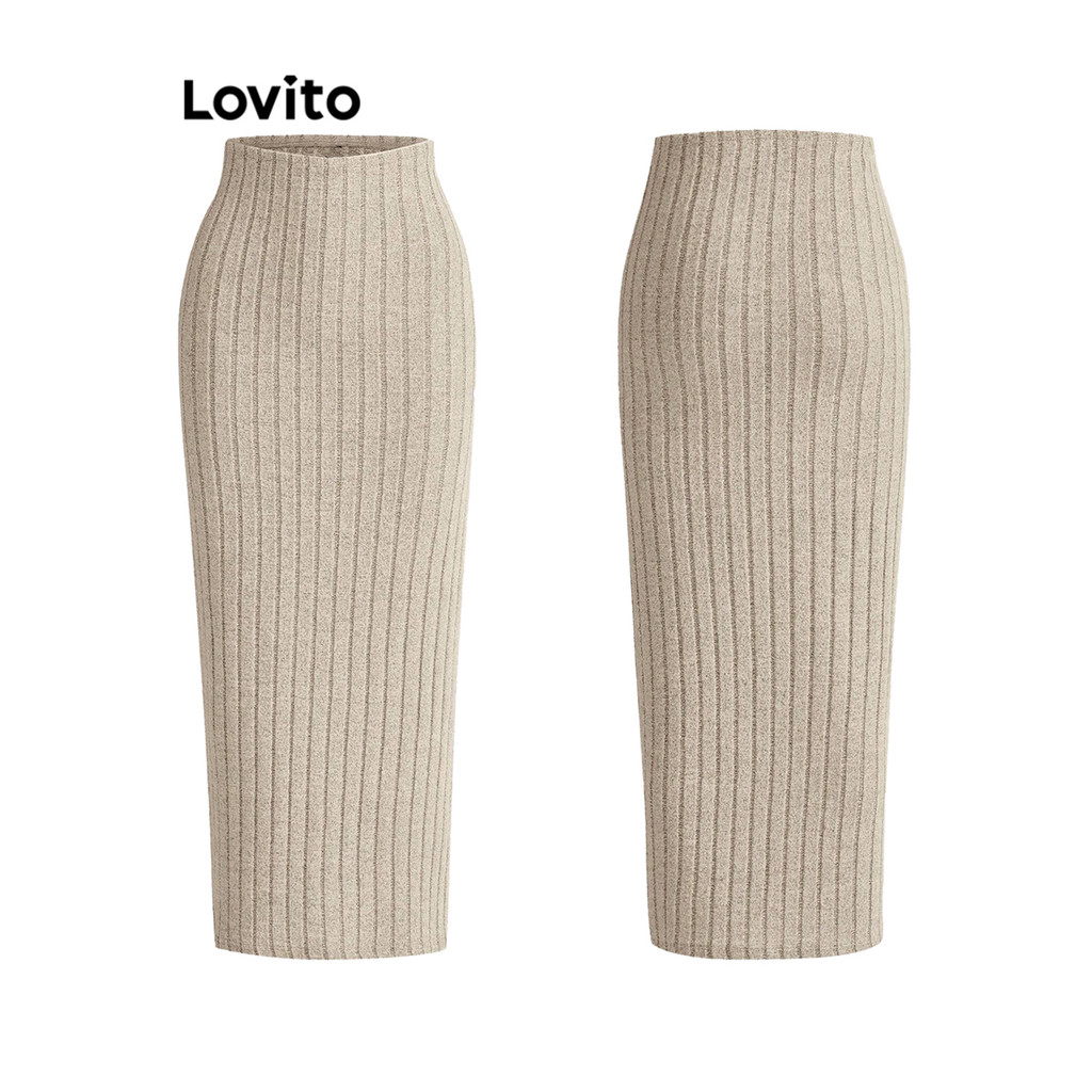 (Hot) Lovito Saias Casuais Saias De Tecido Texturizado Liso Para Mulheres L73AD118