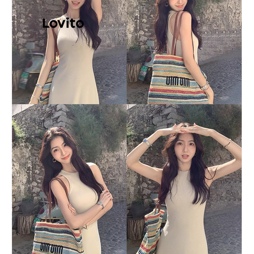 (Hot) Lovito Vestido Básico Casual De Verão/Primavera Para Mulheres LNA65518