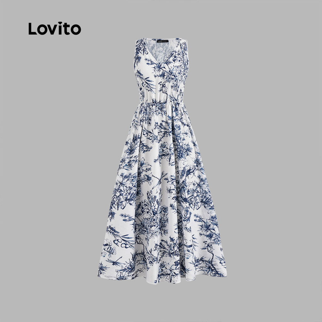 (Hot) Lovito Vestido Boho Ditsy Estrutura Floral Linha Flores Vestido De Verão/Primavera Para Mulheres L124AD1003