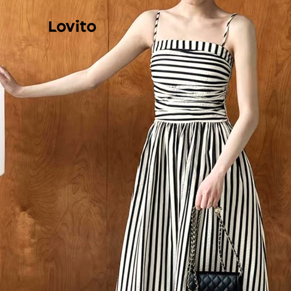 (Hot) Lovito Vestido casual listrado franzido para mulheres L121MD302