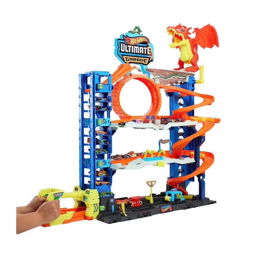 Explore todos os quatro níveis de corrida, acrobacias e narrativas no Hot Wheels City Ultimate Garage. Cada nível inspira aventuras de brincadeira, incluindo corrida lado a lado, acrobacias em loop e uma batalha épica com um dragão devorador de carros. O conjunto vem com dois veículos Hot Wheels e tem estacionamento suficiente para mais de 50 carros de brinquedo em escala 1:64. Ele também se conecta a outros conjuntos para que as crianças possam construir sua cidade Hot Wheels. Conjuntos adicionais vendidos separadamente. As cores e as decorações podem variar. - Corra, faça acrobacias e lute com um dragão no Hot Wheels City Ultimate Garage com vários níveis. - O primeiro andar apresenta detalhes legais para brincadeiras, como mangueiras móveis, um lava-rápido com rolo de espuma, desviadores e conectores para conectar a outros conjuntos como parte de uma cidade Hot Wheels maior. (Pistas adicionais são vendidas separadamente.) - Pegue o elevador de dois carros para o próximo andar, onde as crianças podem lançar os 2 carros Hot Wheels incluídos diretamente do elevador para uma corrida lado a lado. - No terceiro nível, lance-os em um looping lado a lado, ajustando os desviadores para alterar os destinos finais dos carros. - Um dragão faminto por carros aguarda no 4º nível, e as crianças lançam seus Hot Wheels para derrotá-lo ou eles serão devorados. Os carros comidos são "excretados", enquanto o dragão derrotado cai no fundo da garagem. Especificações Fabricante: Mattel Ref.: HKX48 Cód. Barras: 0194735109722 Não recomendado para crianças menores de 03 anos. Dimensões da embalagem (AXLXC): 76 x 61 x 20 cm Peso: 7,670kg Garantia do vendedor: 7 dias Garantia do fabricante: 3 meses Produto original, novo, lacrado e acompanhado de Nota Fiscal.