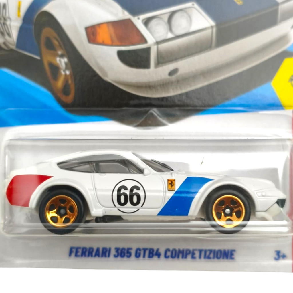 A Hot Wheels Ferrari 365 GTB4 Competizione é uma mini que transmite pura alma Ferrari nas pistas em cada detalhe. As rodas douradas de perfil esportivo completam o visual arrojado, e a silhueta fiel ao modelo faz dessa peça uma escolha indispensável para colecionadores que valorizam miniaturas com forte apelo visual e histórico nas pistas e da icônica escuderia. Especificações Marca: Hot Wheels Escala: 1:64 Material: Metal e partes plásticas Cores: Branca ou amarela. Crianças acima de 3 anos de idade.