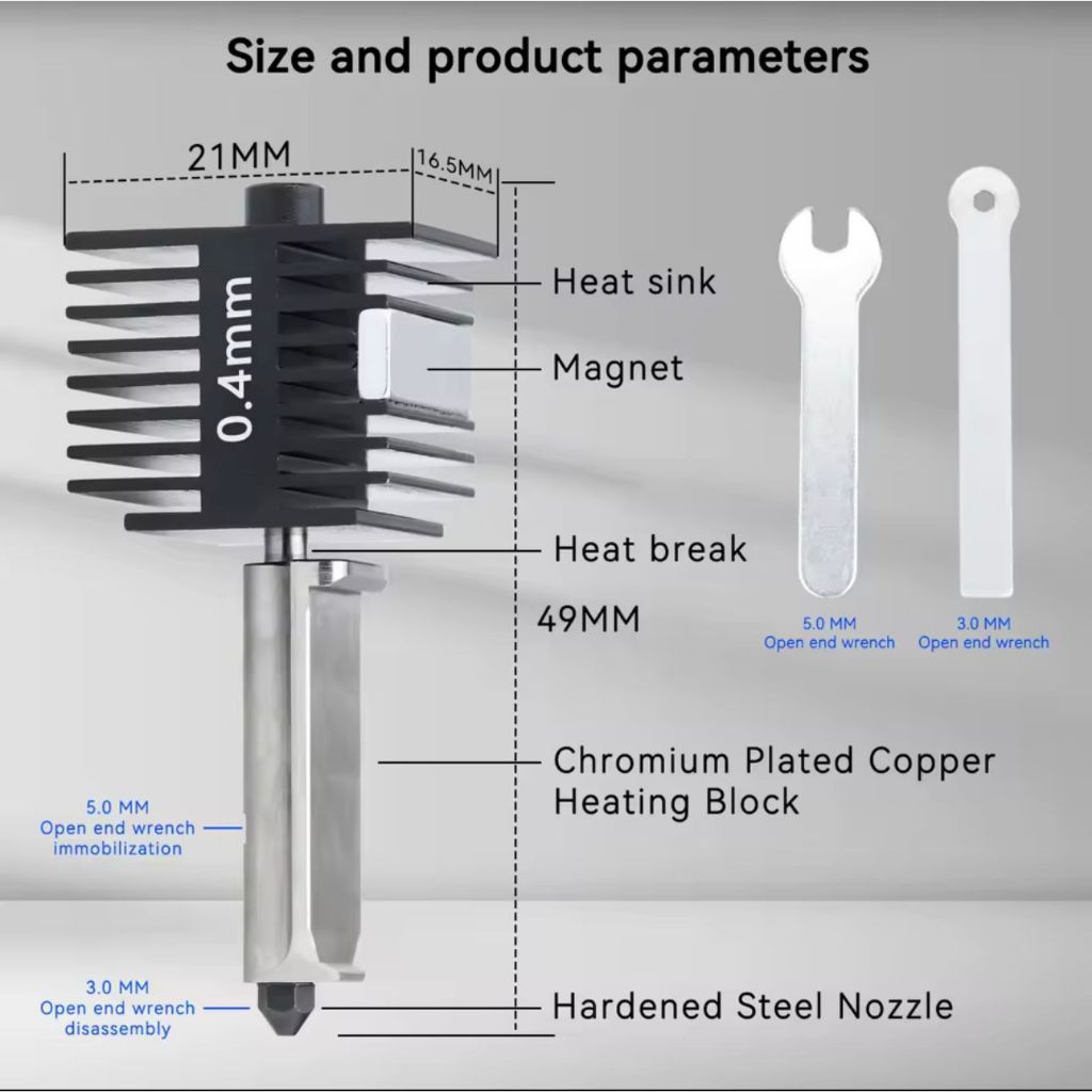 Hotend 0.2mm Bambu Lab A1 e A1 Mini Bico Aço Endurecido Removível Fácil Manutenção
