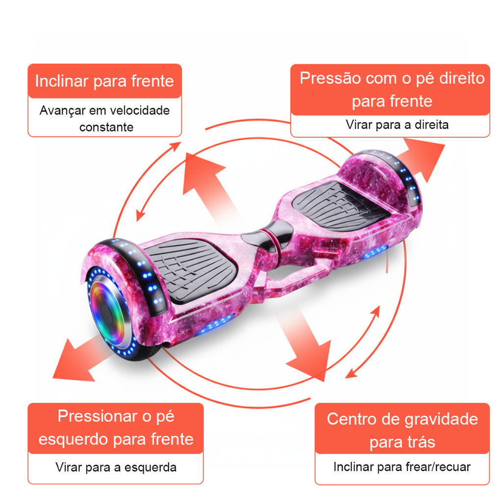 Hoverboard Overboard Infantil Skate Elétrico 6.5" LED Bluetooth Motor Brushless-Estoque do Brasil