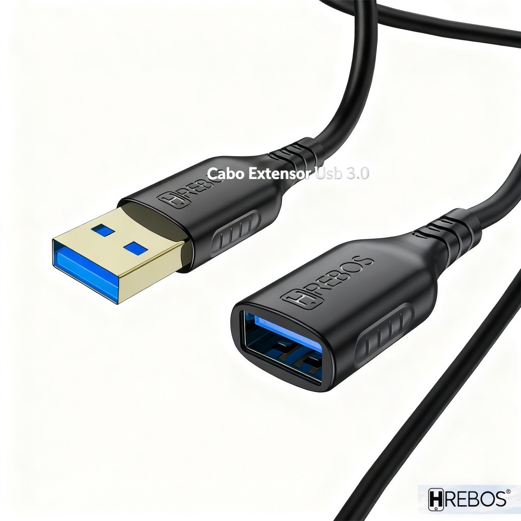 HREBOS Original Cabo Extensor Usb 3.0 De 1 Metros Macho Femea HS-038