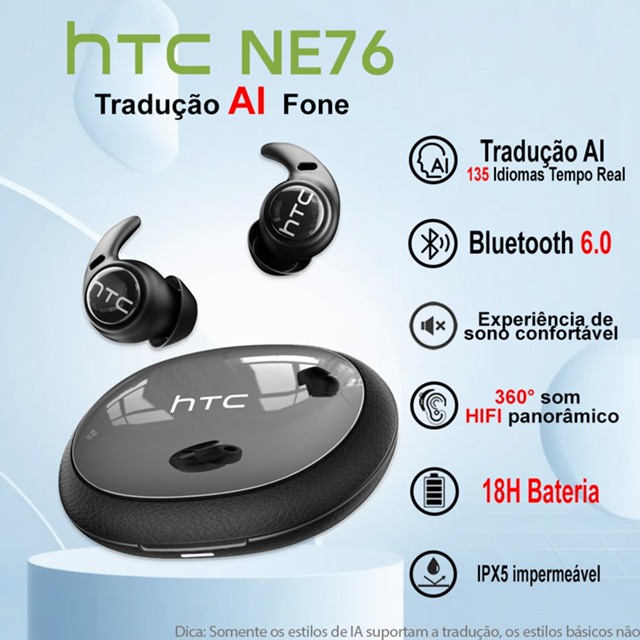 | HTC NE51 AI Fone De Ouvido Sem Fio TWS Tradução Em Tempo Bluetooth ... | R$ 55,99 | 50% | 5.0/5 | — |