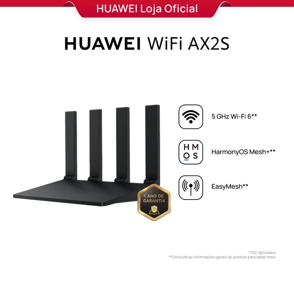 HUAWEI WiFi AX2S | Roteador | WS7000 V2 | Dual Band | 4 Antenas | 5 GHz Wi-Fi 6