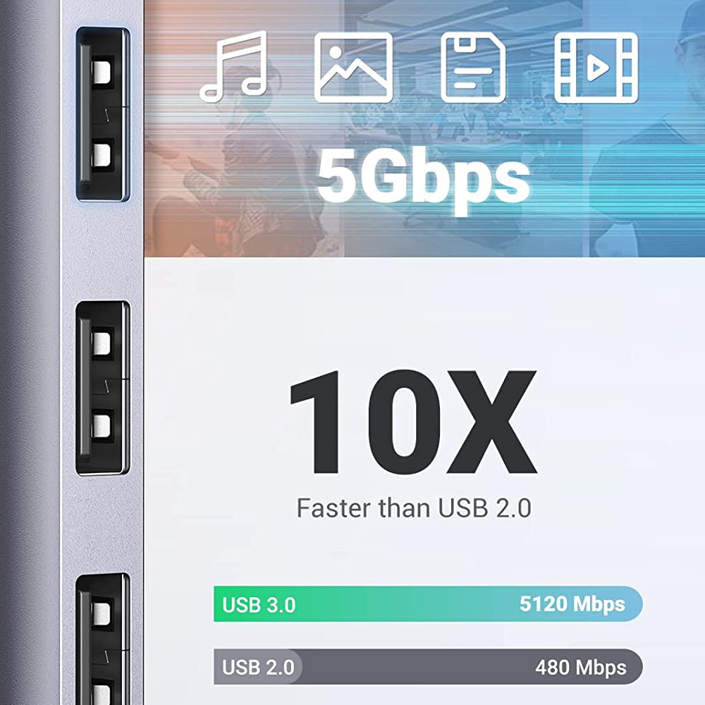 Hub Adaptador Ugreen 4 Portas Usb 3.0 Velocidade Até 5Gbps