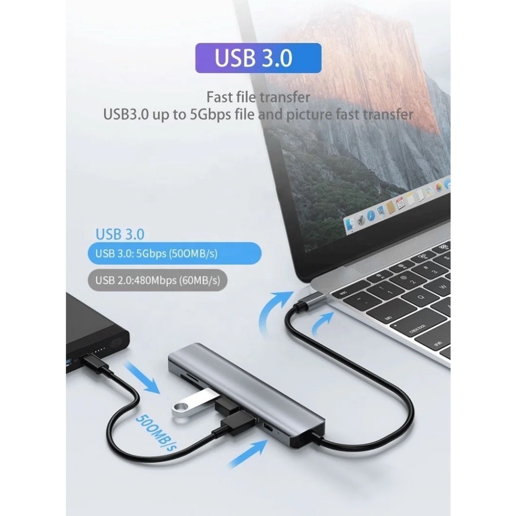 Hub Tipo C 7 Em 1 Macbook Hdmi 4k Usb 3.0 Usb-c Pd Cartão Sd