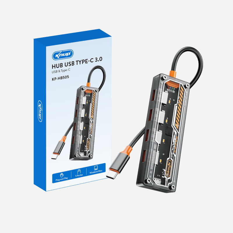 Hub USB 3.0 Tipo C 4 Saídas Alimentação Extra Knup KP-HB505