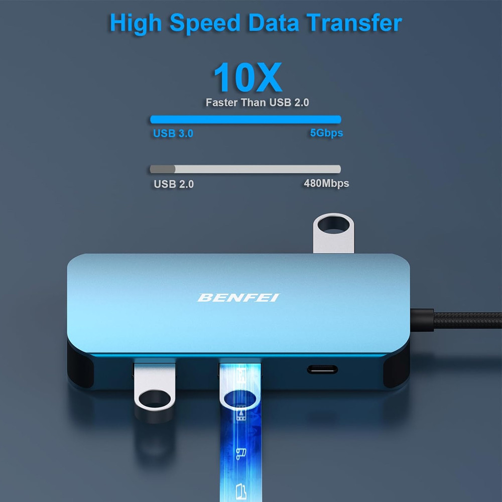 Hub USB C BENFEI MST 8 em 1 Docking Station HDMI Duplo VGA USB 3.0 Transferência Rápida 5Gbps 100W PD Áudio Auxiliar para MacBook Pro iPhone 15 Pro Windows 1. Expansão Imediata 8 em 1: O Hub USB C BENFEI MST transforma uma única porta USB-C em uma solução de conectividade completa. Adicione instantaneamente 2 Portas HDMI, 1 Porta VGA, 3 Portas USB 3.0, 1 Porta Power Delivery (PD) de 100W e 1 Porta Auxiliar de Áudio 3.5mm. Apresentações de negócios, uso em projetores ou para expandir sua área de trabalho. 2. Solução MultiScreen para 3 Telas: Com suporte à funcionalidade MST, este Adaptador USB C permite a saída para até três telas simultâneas (2 HDMI e 1 VGA). As resoluções de vídeo podem chegar a 4K (3840*2160@30Hz) ou Full HD 1080P (1920x1080@60Hz), oferecendo flexibilidade para estender ou espelhar sua área de trabalho conforme a configuração do seu computador. 3. Desempenho Incrível com USB 3.0 e Áudio de Alta Fidelidade: Transfira e faça backup de arquivos em velocidades ultrarrápidas de até 5Gbps através das 3 portas USB 3.0. O chip DAC Smart Chip integrado na porta Auxiliar 3.5mm oferece áudio de alta fidelidade com potente redução de ruído, garantindo som claro e nítido. 4. Carregamento Power Delivery (PD) de Alta Potência: Mantenha seu laptop carregado enquanto usa múltiplas portas. A porta USB-C Power Delivery (PD) suporta carregamento rápido de até 100W, fornecendo até 85W de potência segura e eficiente para o seu computador, produtividade sem interrupções. 5. Ampla Compatibilidade Plug and Play: O 000335blue é compatível com uma vasta gama de dispositivos, incluindo MacBook Pro 2023/2022/2021/2020, iPhone 15 Pro/Max, Surface Book, Dell XPS, Samsung Galaxy e outros dispositivos USB-C. A instalação é Plug and Play com sistemas operacionais Mac OS e Windows. Garantia 90 dias