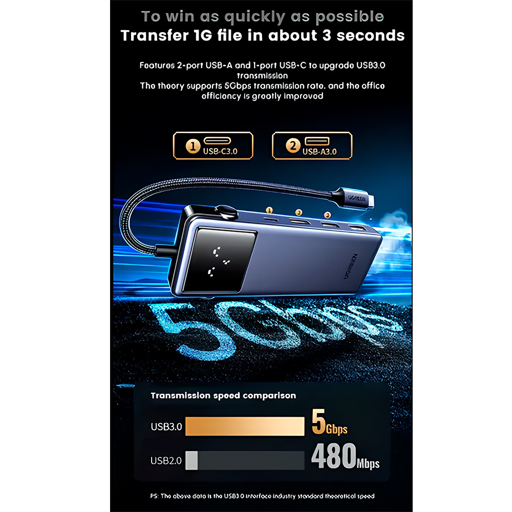 Hub USB-C UGREEN 7 em 1 HDMI USB-C 3 USB-A RJ45 Ethernet