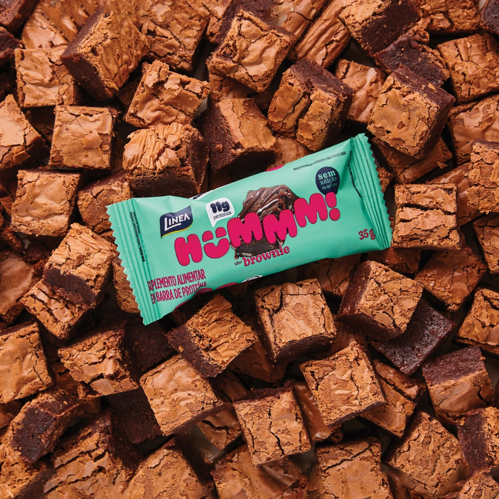 Hummm! é a barrinha de proteína com a Marca Linea de qualidade que chegou para provar que ser saudável também pode ser extremamente gostoso. Com 9 diferentes e irresistíveis sabores, você encontra Hummm! em opções de 20g ou 35g. Nossas barrinhas de 35g, com 11g de proteínas, são ideias para saciar a fome e manter a energia durante o dia ou após o treino, tornando-se um lanche substancial e prático para qualquer agenda. Leve Hummm! sempre com você e mantenha sua energia em alta. INGREDIENTES: Cobertura ao leite, recheio sabor brigadeiro, concentrado proteico de soro de leite em pó (whey protein), gordura vegetal de palma, concentrado proteico de leite em pó (whey protein), isolado proteico de soro de leite em pó, colágeno hidrolisado, glicerina bidestilada, cacau em pó alcalino, edulcorante maltitol, umectante polidextrose, emulsificante lecitina de soja, aromatizante, conservador sorbato de potássio e antioxidante tocoferol. ALÉRGICOS: CONTÉM DERIVADOS DE SOJA E LEITE. PODE CONTER OVOS, AMENDOIM, AVELÃS, CASTANHA-DE-CAJU, CASTANHA-DO-PARÁ, NOZES E GERGELIM. CONTÉM LACTOSE. NÃO CONTÉM GLÚTEN.