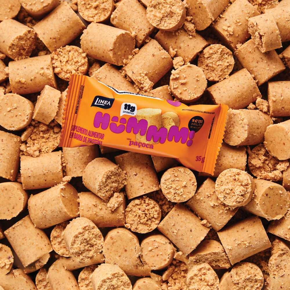 Hummm! é a barrinha de proteína com a Marca Linea de qualidade que chegou para provar que ser saudável também pode ser extremamente gostoso. Com 9 diferentes e irresistíveis sabores, você encontra Hummm! em opções de 20g ou 35g. Nossas barrinhas de 20g, com 5g de proteínas, permitem que você desfrute de um snack doce e saboroso sem comprometer suas metas nutricionais. Leve Hummm! sempre com você e mantenha sua energia em alta. INGREDIENTES: Cobertura branca, recheio sabor mousse de maracujá, concentrado proteico de leite em pó (whey protein), concentrado proteico de soro de leite em pó (whey protein), gordura vegetal de palma, colágeno hidrolisado, edulcorante maltitol, umectante polidextrose, aromatizante, corante curcumina, emulsificante lecitina de soja, acidulante ácido cítrico, conservador sorbato de potássio e antioxidante tocoferol. ALÉRGICOS: CONTÉM DERIVADOS DE LEITE E SOJA. PODE CONTER OVOS, AMENDOIM, AVELÃS, CASTANHA-DE-CAJU, CASTANHA-DO-PARÁ E NOZES. CONTÉM LACTOSE. NÃO CONTÉM GLÚTEN.