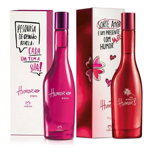 Olá, seja muito bem vindo(a) a minha loja na shopee! Meu nome é Regina, sou consultora multimarcas e DESTAQUES em vendas pela empresa Natura. Trabalhamos com produtos originais e lacrados conforme recebo de fábrica. Fazemos envio todos os dias, exeto sábado, domingo e feriados. Fique a vontade para fazer perguntas e nos avaliar, pois isso nos ajuda a sempre melhorar o nosso atendimento ao cliente. Obrigada pela preferência e Boas compras!!! Humor é um jeito de olhar a vida. Um convite a quebrar a seriedade do cotidiano de forma ousada e divertida. #espalheseuhumor. Floral moderado. o primeiro lançado da linha humor meu primeiro humor, um encontro das notas cítricas com um coquitel de frutas vibrantes, contrastado com um irresistível frozen de pera. Fragrância irreverente, enriquecida com priprioca. Ingrediente natural da biodiversidade brasileira. Adocicado moderado e cheio de personalidade humor próprio possui uma leitura inovadora da cereja, trazendo o lado doce da calda para sua composição. Para curtir a vida tranquilo, com muito humor. o kit contém 1 desodorante colônia humor próprio 75 ml e 1 desodorante colônia meu primeiro humor 75 ml caso queira o kit. A Casa de Perfumaria do Brasil abriga um jeito de fazer todo próprio; autoral, criativo e ousado. Perfumista exclusiva; Fragrância com alcool orgânico como base; Uso de vidro reciclado em todos os frascos; Óleos essenciais inéditos da biodiversidade.