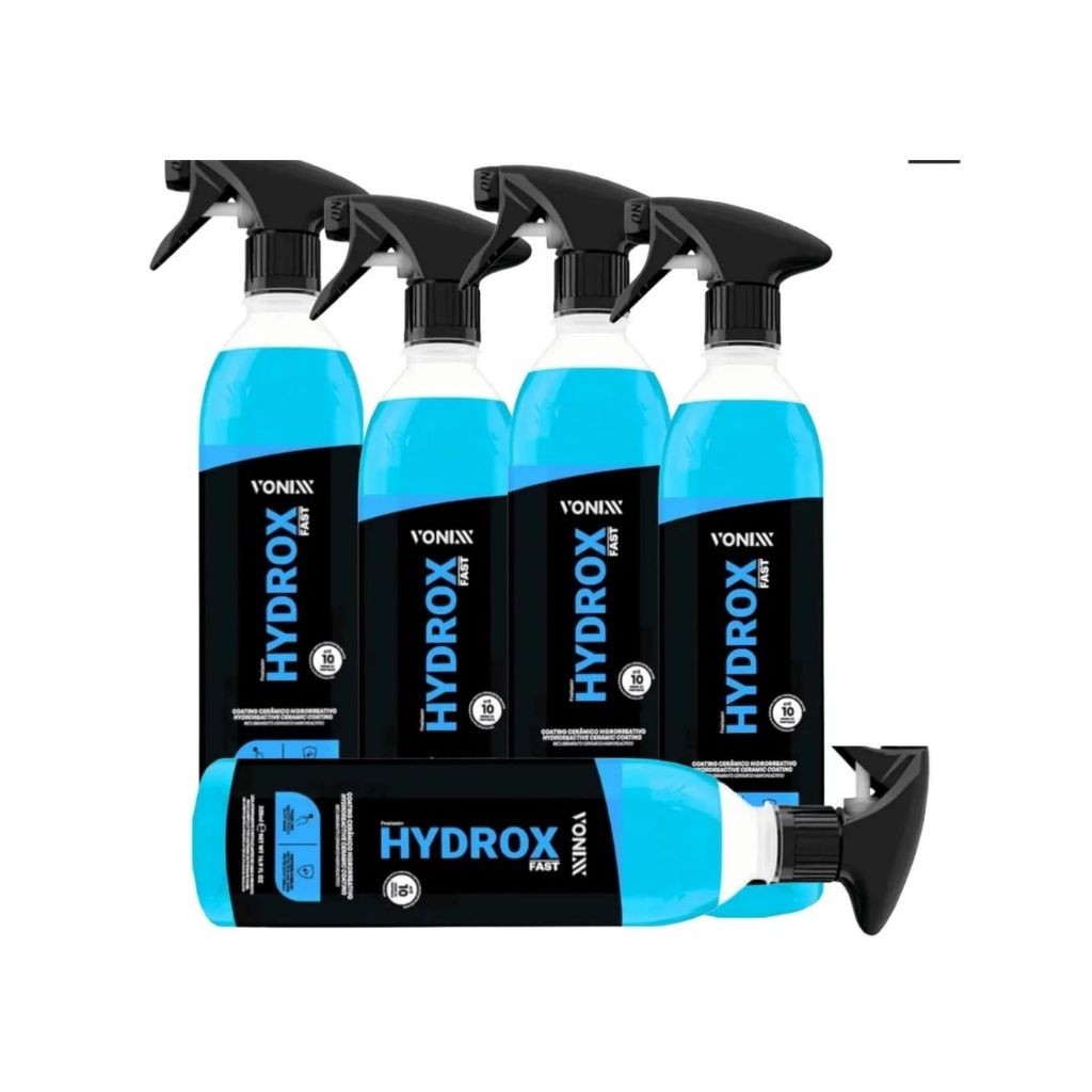 HYDROX FAST 500ML VONIXX DESCRIÇÃO: HYDROX FAST é um revolucionário coating cerâmico hidrorreativo de alta tecnologia. Ele é ativado através da água, sem necessidade de toque. Proporciona uma incrível proteção de até 10 meses na pintura, deixando o toque liso, aumentando significativamente o brilho e protegendo contra a ação do tempo. Também pode ser aplicado em vidros para melhorar a hidrorrepelência. MODO DE USO: 1- Lave bem o veículo. 2- Com o carro ainda molhado, pulverize o produto sobre toda a pintura, sempre fria, sem deixar o produto secar na superfície. 3- Enxágue imediatamente utilizando uma lavadora de alta pressão para ativar o produto e observe o efeito de hidrorrepelência imediato. 4- Seque o veículo.