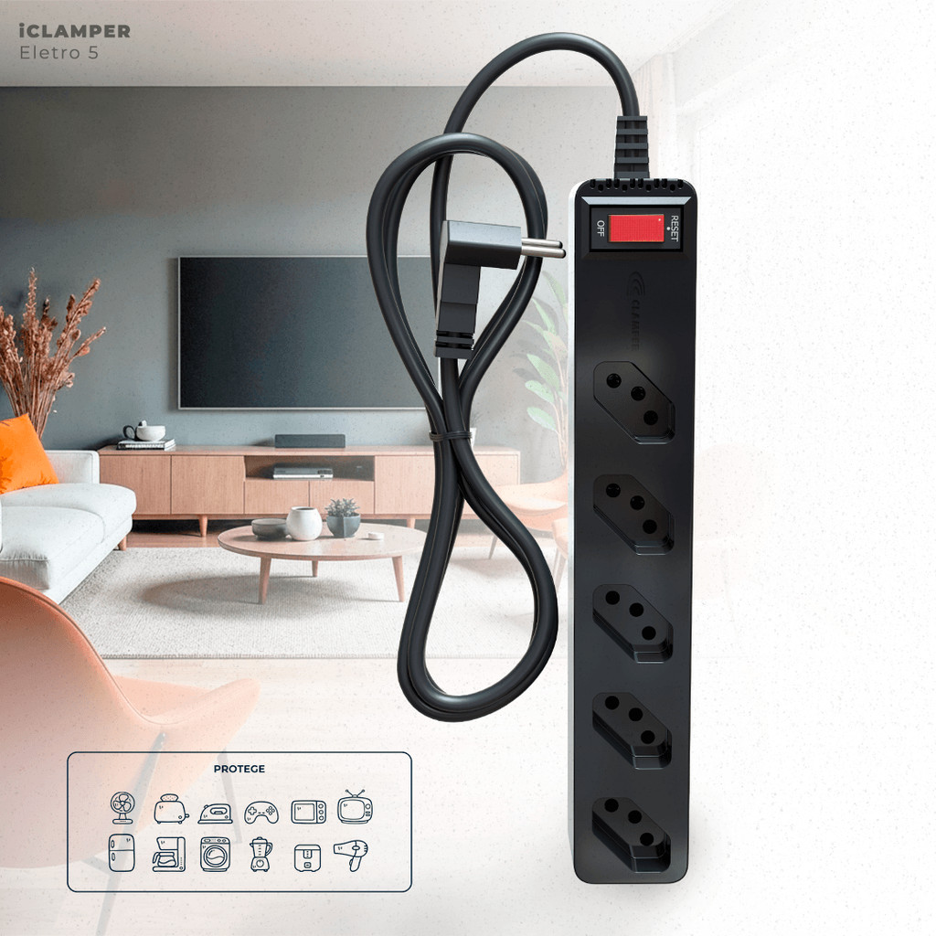 Lançamento: iCLAMPER Eletro 5 Chegou a evolução da proteção para o seu lar! O novo iCLAMPER Eletro 5 foi desenvolvido especialmente para proteger seus eletrodomésticos e eletroportáteis de até 10 A contra surtos elétricos, garantindo mais segurança e durabilidade para os equipamentos que fazem parte do seu dia a dia. Imagine ter a tranquilidade de saber que sua geladeira pequena, liquidificador, batedeira, cafeteira elétrica, sanduicheira, ventilador, purificador de água e até sua TV estão protegidos contra picos de energia. Com 8 tomadas disponíveis, você pode conectar e proteger vários aparelhos ao mesmo tempo, sem abrir mão da organização e da praticidade. ? Proteção de verdade – Evite prejuízos causados por surtos elétricos em até 8 eletrodomésticos ou eletrônicos. ? Praticidade Plug & Play – É só plugar na tomada e usar, sem complicações. ? Design inteligente – Compacto, moderno e discreto para qualquer ambiente da casa. ? Durabilidade garantida – Produto robusto com 6 ANOS DE GARANTIA. O iCLAMPER Eletro 5 é o aliado ideal para quem quer mais segurança e tranquilidade dentro de casa. Proteja seus eletrodomésticos, preserve seu investimento e viva sem preocupações com quedas de energia e surtos elétricos. Não fique para trás: garanta já o lançamento que vai transformar a proteção da sua casa!