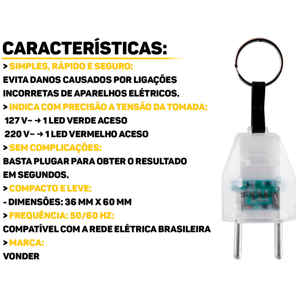 Identificador De Tensão Chaveiro Testador De Voltagem Com Indicador De Led Tomadas 127/220v Vonder