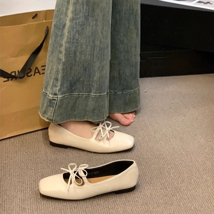 IELGY 2026 Sapatos Femininos Com Laço Vermelho , Novo Estilo Francês , Corte Baixo , Sola Macia