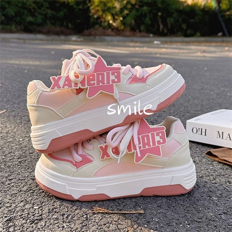 IELGY Branco Rosa Plataforma Feminina Sapatos Femininos 2025 Novos 5 Tênis Versáteis Com Design De Nicho