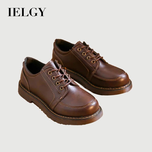 IELGY Brown Lace-up Oxford Alguns Sapatos De Couro Femininos 2025 Preppy Vintage Com Saia