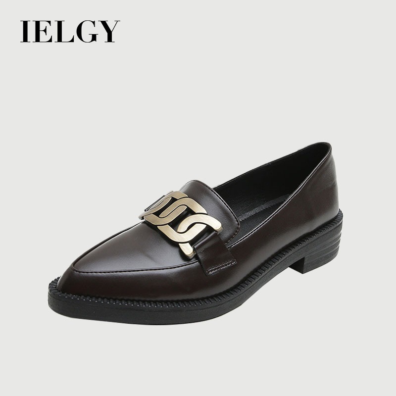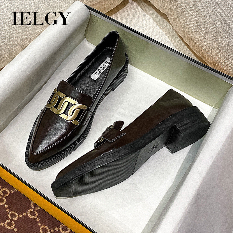 IELGY Mocassins 2025 Novo Metálico Retro Estilo Britânico Slip-on Sapatos De Couro Flat Feminino Plus Size