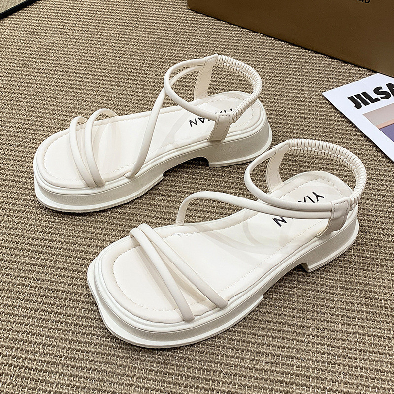 IELGY Novas Sandálias Romanas De Verão Com Cinta Reta Cross Plataforma Versátil Para Mulheres