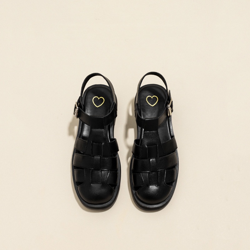 IELGY Sandálias Romanas Femininas De Couro Macio casual Com Sola Grossa E Bico Oco