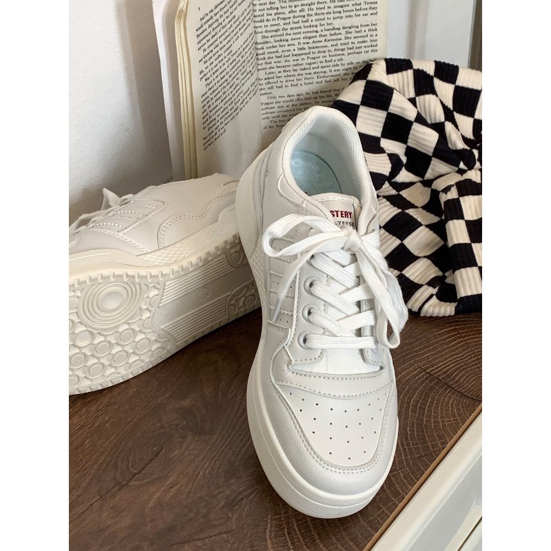 IELGY Sapatos Brancos Femininos , Solas Grossas , Primavera E Outono , Tênis Esportivos Versáteis Para Estudantes