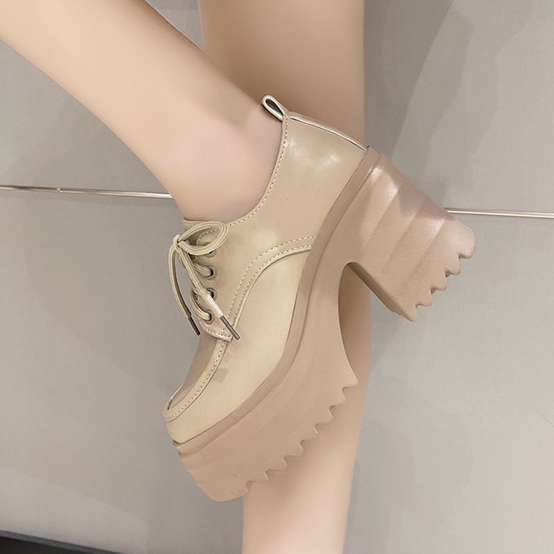 IELGY Sapatos De Couro Estilo Britânico Feminino Com Fundo Grosso Aumentando Pequenos