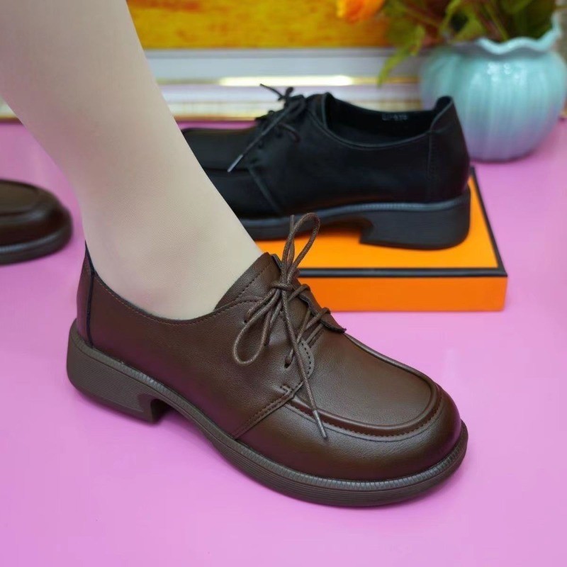 IELGY Sapatos De Couro Pretos Com Cadarço Para Mulheres , Novos Versáteis De Salto Baixo , Macios E Confortáveis , Plano
