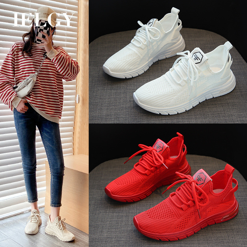 IELGY White Fly Woven Coconut Shoes Novos Tênis Coreanos De 4cm Casual Student Office Run