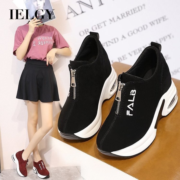 IELGY Zipper Casual Tênis Almofada Flats Cunha Salto Aumentando Esportes Da Moda