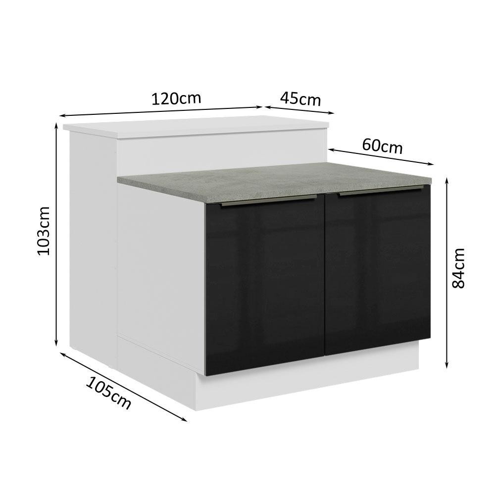 Ilha de Cozinha com Bancada e Balcão 120 cm Branco/Preto Lux Madesa