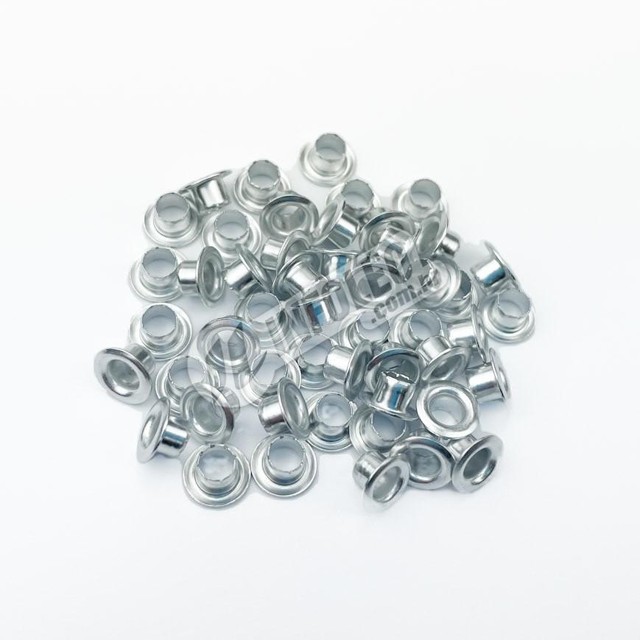 O ilhós Nº 54 ou 3/16" que é muito usado em artesanato, ideal para aplicação nas agendas ou cadernos para fixar ou aplicar elástico. Diâmetro externo: 8mm Diântro interno: 6mm Altura: 4mm Material: Alumínio Quantidade: 50, 100, 150, 200 ou 250 unidades Cor: Prata Polido