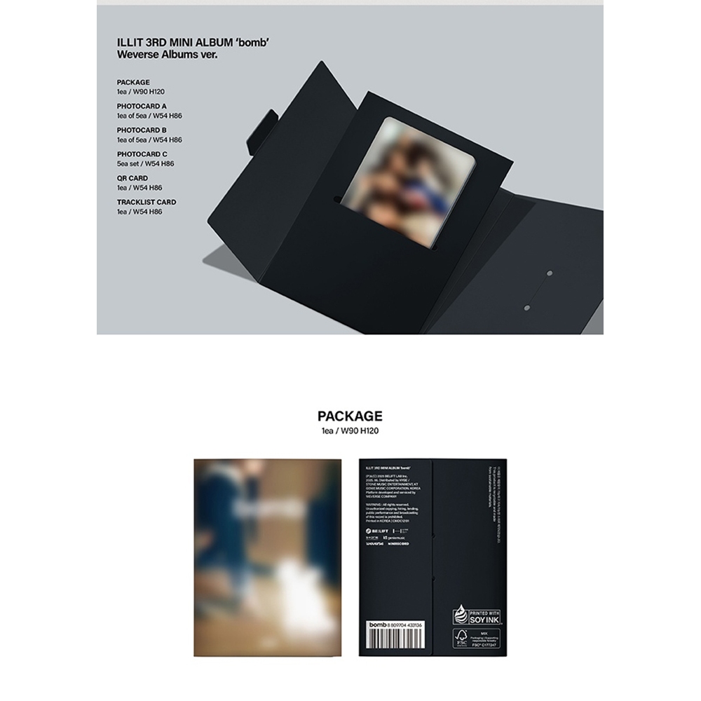 ◈ILLIT - 3rd Mini Album [ Bomb ]◈ 💿ILLIT - 3rd Mini Album [ Bomb ]_Weverse Album ver 🎵 Contents - Package - Photo card A (1 out of 5) - Photo card B (1 out of 5) - Photo card C 5ea 1set - QR Card - Tracklit Card 📅 Released on June 16, 2025 #illit