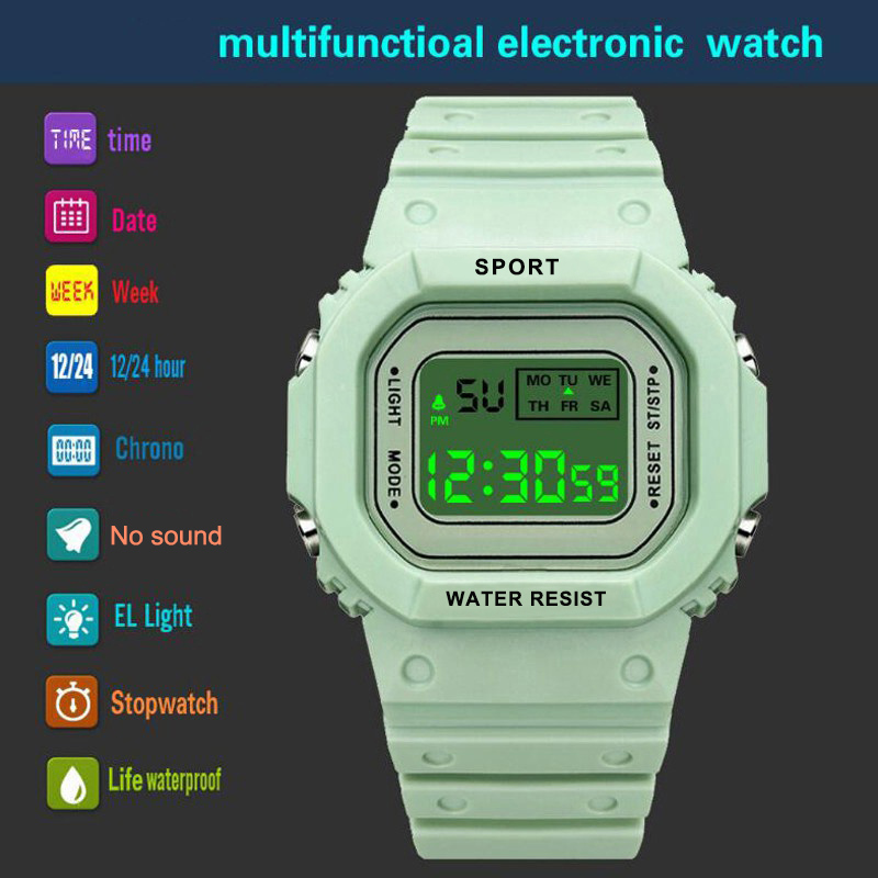 Illunt Life Relógio Digital Unissex À Prova D'água Cor Doce Pequeno Quadrado Estilo Ins Para Estudantes