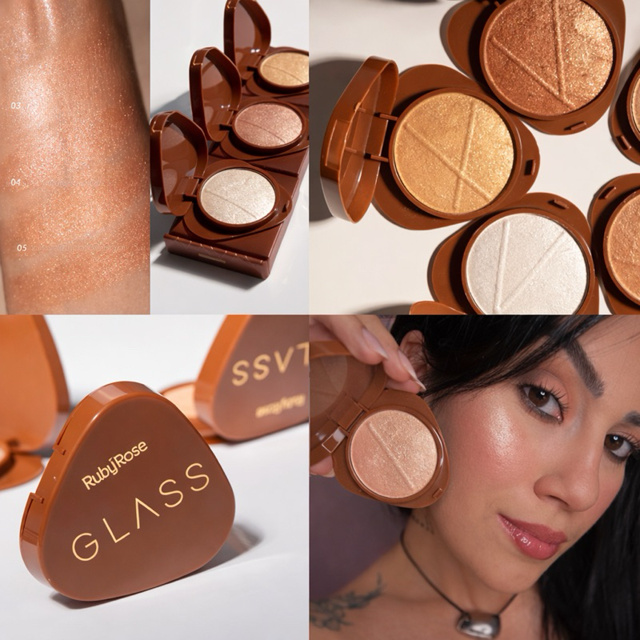 Transforme sua maquiagem com o iluminador Baked da linha Glass, da Ruby Rose, um produto que traz um brilho radiante e sofisticado para sua pele. Com uma textura "baked" (assada), esse iluminador oferece um acabamento mais suave e um glow natural, que se adapta ao seu tom de pele e ilumina de forma impecável. Perfeito para criar um look radiante tanto de dia quanto à noite, o iluminador garante um toque de elegância em cada detalhe. Aplique nas têmporas, no alto das maçãs do rosto, no arco do cupido e no centro da testa para um brilho iluminado e delicado, ou intensifique a aplicação para um efeito mais marcante e glamouroso.