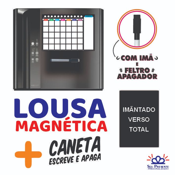 IMÃ DE GELADEIRA COM MANTA MAGNÉTICA E CANETA QUE ESCREVE E APAGA MENSAL