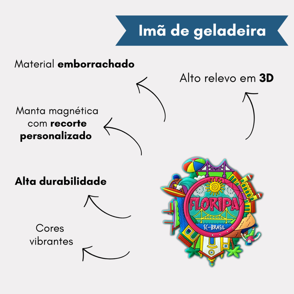 Ima de Geladeira Emborrachado Floripa SC Atrativos - Lembrança Ilha da Magia Florianópolis Praia