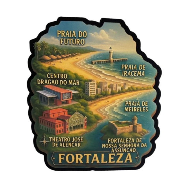 Imã de Geladeira Fortaleza – Pontos Turísticos Ilustrados, Lembrança de Viagem