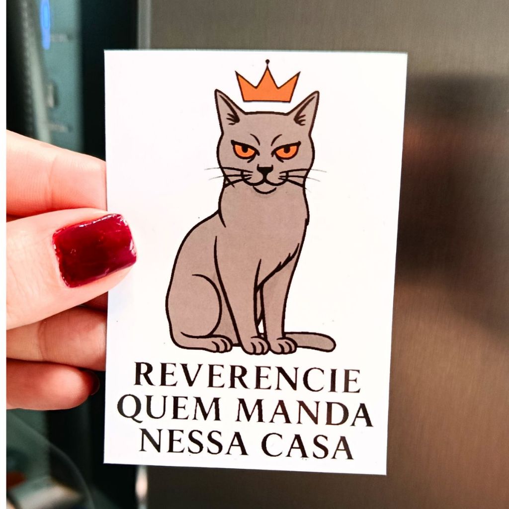 Ímã de Geladeira Gato Humorado 6x8,5cm – Decoração Criativa com Frase Divertida
