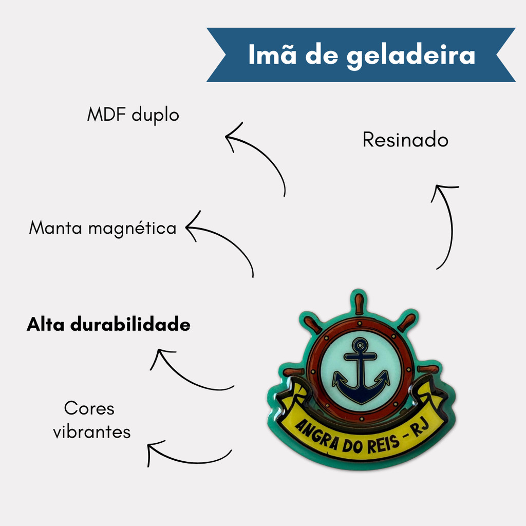 Imã de Geladeira MDF Duplo Epóxi Angra dos Reis RJ Leme - Lembrança Cais Santa Luzia Lagoa Azul