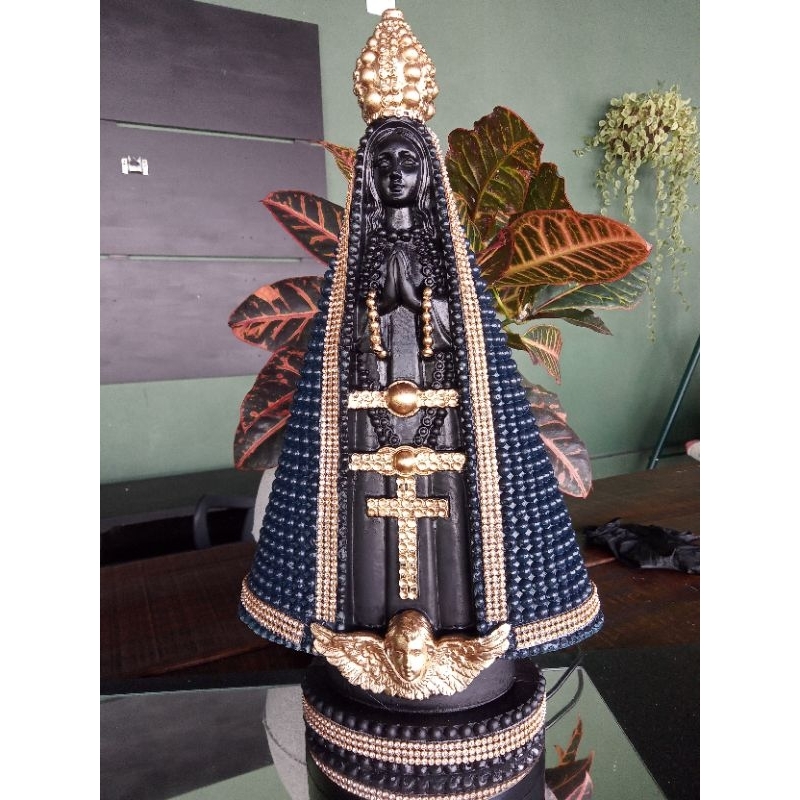 Imagem de Nossa Senhora Aparecida 40cm de Gesso e Strass grande Preta e Azul!