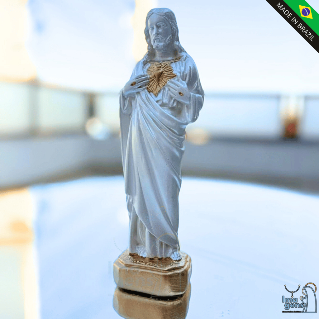 ❤️✨ Imagem Sagrado Coração de Jesus – 21 cm | Gesso Pérola com Dourado ✨❤️ 📏 Altura: 21 cm 📐 Base: 6 cm de largura ⚖️ Peso aproximado: 270 gramas 🎨 Material: Gesso de alta qualidade 💎 Acabamento: Pintura perolada com detalhes dourados Imagem belíssima e expressiva do Sagrado Coração de Jesus, feita artesanalmente em gesso, com acabamento fino em pérola e dourado. Uma peça compacta e elegante, ideal para altares, oratórios, ambientes de oração ou como presente de fé e devoção profunda. 🙏✨ 📖 Significado e Devoção: A devoção ao Sagrado Coração de Jesus expressa o amor infinito e misericordioso de Cristo por toda a humanidade. A imagem apresenta o Coração de Jesus exposto, cercado de chamas e coroado de espinhos — símbolos de seu sacrifício, compaixão e promessa de salvação. Essa devoção foi revelada a Santa Margarida Maria Alacoque no século XVII, com promessas especiais a quem consagrar o lar ao Sagrado Coração, trazendo paz, bênçãos e proteção familiar. ❤️🔥 💬 Ideal para: Altares, oratórios e capelas Quem busca fortalecer a fé e consagrar sua família ao Sagrado Coração Decoração espiritual com profundidade Presentes devocionais cheios de amor e simbolismo ✝️ ⚠️ Cuidados com a peça: Produto artesanal – manusear com carinho 🤲 Evitar quedas ou impactos 💥 Limpar com pano seco e macio 🧽 Não molhar ou expor à umidade 🚱 🎁 Presenteie com fé e o amor misericordioso do Coração de Jesus! 📦 Embalagem reforçada para garantir segurança total no transporte. 🙏 Leve para o seu lar a presença amorosa e poderosa do Sagrado Coração de Jesus, fonte de luz, proteção e salvação. ❤️✨