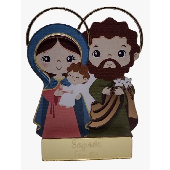 imagem Infantil Totem Mdf Com Acrdilico Sagrada Familia 12cm