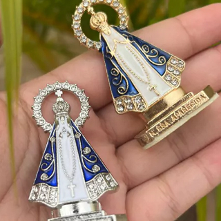 Nossa Senhora Aparecida Imagem Coroa Painel Kit com 24 Unidades Produto em estoque em nossa loja. Nossa Senhora Aparecida em metal com resplendor, mesma imagem nos dois lados, com dupla face na base, para ser colado! Miniatura Nossa Senhora Metal Aparecida com embalagem individual Linda imagem de Nossa Senhora Aparecida dourada folheada com fita dupla face na base para colar em painel de carro ou colocar em estante e mesa de escritório. Essa imagem tem a função simbólica de apresentar Nossa Senhora Aparecida de maneira singela em um ambiente dentro do carro ao longo da viagem ou no escritório durante o trabalho. Material:Metal Pintura Folheada Altura 5,5 cm Peso Aproximado 23g Qualquer duvida nos chame no CHAT Shopee, será um prazer te atender!!