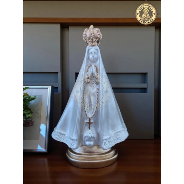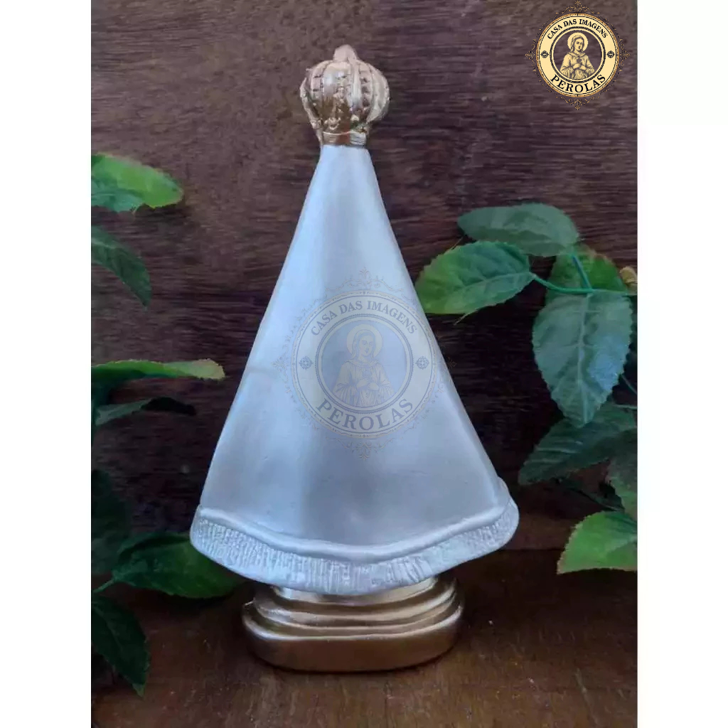 Imagem nossa senhora Aparecida lisa 19 cm gesso pérola e dourado padroeira do brasil presente de fé decoração religiosa