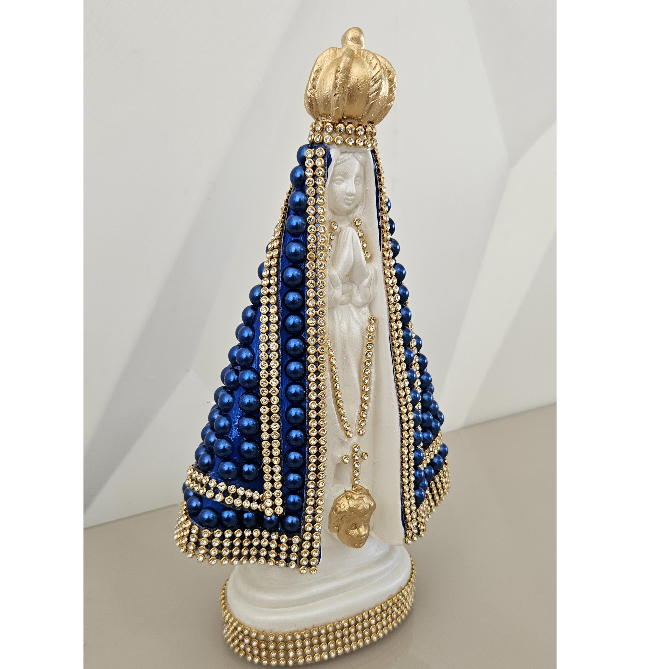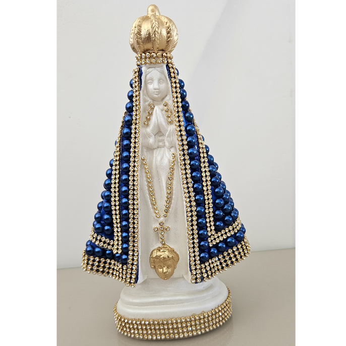 • Imagem Nossa Senhora Aparecida Pérola Azul • Feito em gesso • Altura: 22 cm • Ideais para batizados, presentes significativos, momentos de devoção ou decoração com propósito. Trabalhamos com lindas imagens católicas, terços, chaveiros e demais artigos religiosos, feitos por nós com muito capricho e qualidade, além de um ótimo preço por sermos fabricante. Visite nosso perfil e conheça todas as opções. *7 dias para troca em caso de defeito de fábrica*