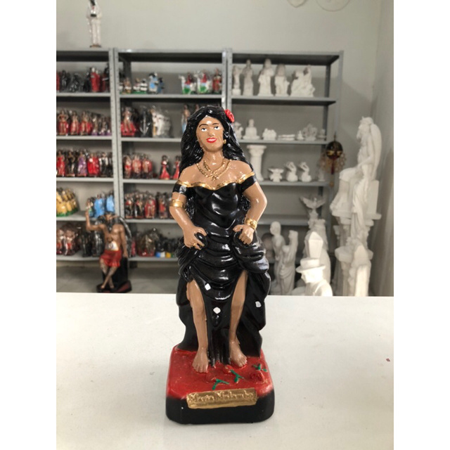 Maria Mulambo, também conhecida como Maria Molambo, é uma entidade espiritual feminina reverenciada nas religiões afro-brasileiras, especialmente na Umbanda e na Quimbanda. Ela é uma Pomba Gira, e é conhecida por sua capacidade de transformar situações adversas e trazer esperança para aqueles que passam por dificuldades. altura : 20cm Material: gesso pintura : automotiva